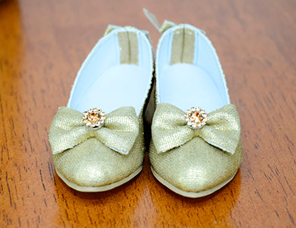 This attire comes complete with a full underskirt and a white cotton chemise, and is complemented by a pair of shoes featuring a bow and jewels.